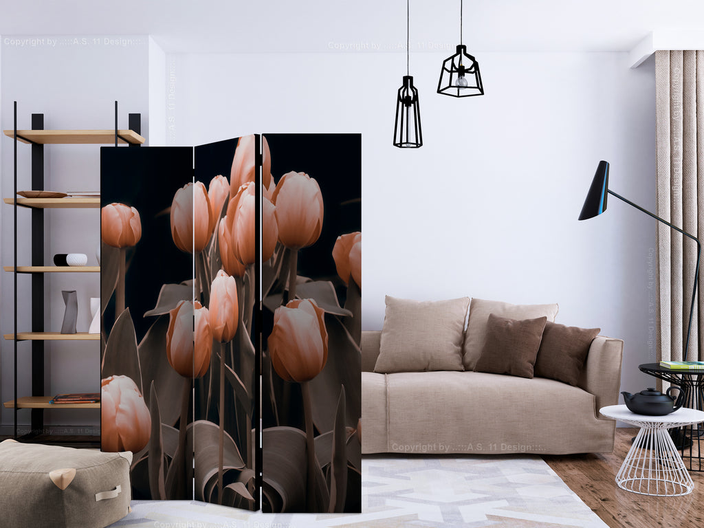 Het decoratieve vouwscherm "Vouwscherm - Ladies among the flowers [Room Dividers]" past uitzonderlijk mooi in een modern interieur. Het houten driedelige en tweezijdig bedrukte vouwscherm geeft niet alleen een mooie opdeling van een ruimte maar geeft ook een fantastische flair aan uw interieur. De perfectie uitvoering en het originele motief in full HD uitvoering zorgen ervoor dat de kamervouwschermen iedere ruimte een originele charme verschaffen. Een prachtig kamervouwscherm is een zeer originele versiering en kan bijvoorbeeld prima worden toegepast in woningen of dienstruimten. (kapsalon, dokterskliniek, administratiekantoor etc)