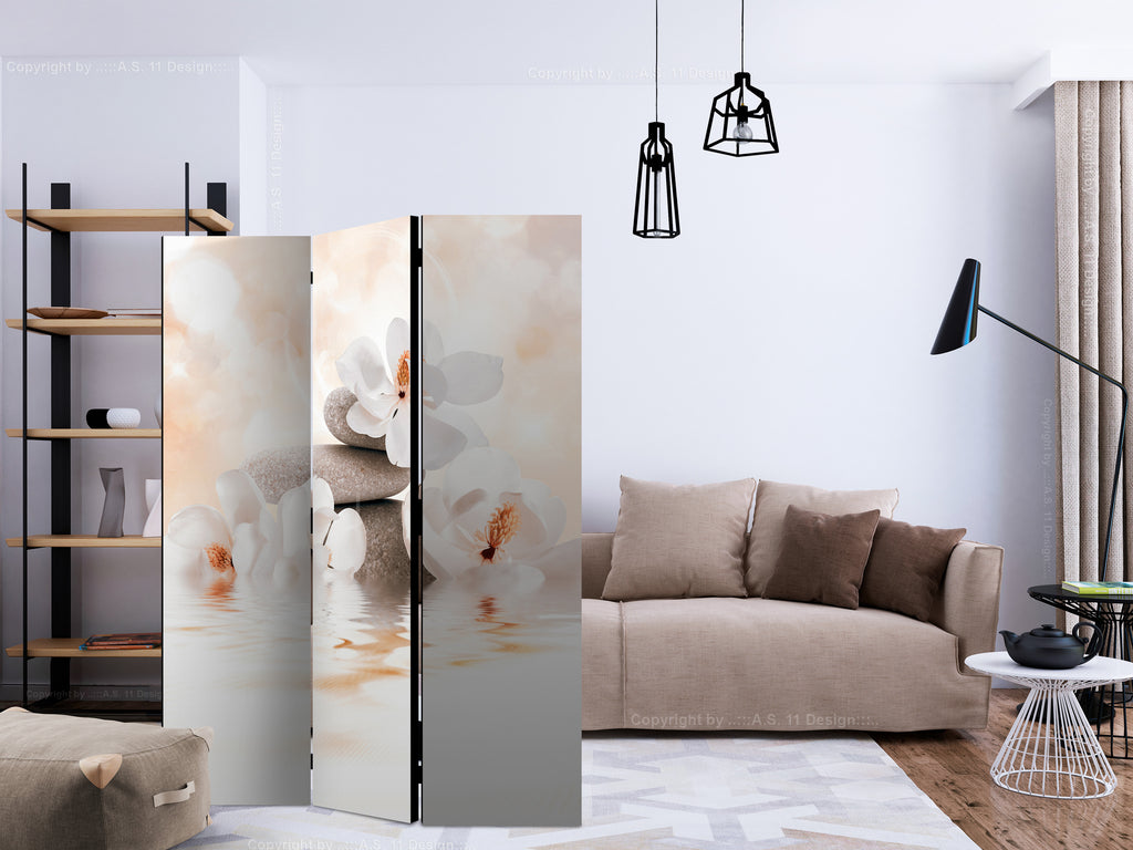 Het decoratieve vouwscherm "Vouwscherm - Lake of Tranquility [Room Dividers]" past uitzonderlijk mooi in een modern interieur. Het houten driedelige en tweezijdig bedrukte vouwscherm geeft niet alleen een mooie opdeling van een ruimte maar geeft ook een fantastische flair aan uw interieur. De perfectie uitvoering en het originele motief in full HD uitvoering zorgen ervoor dat de kamervouwschermen iedere ruimte een originele charme verschaffen. Een prachtig kamervouwscherm is een zeer originele versiering en kan bijvoorbeeld prima worden toegepast in woningen of dienstruimten. (kapsalon, dokterskliniek, administratiekantoor etc)