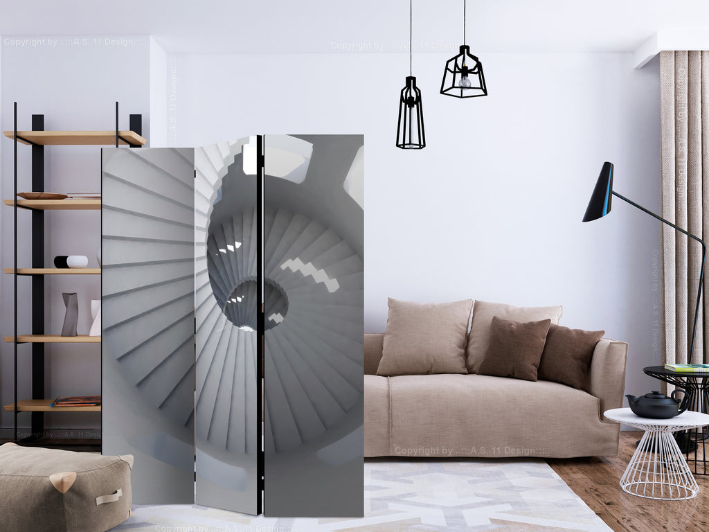 Het decoratieve vouwscherm "Vouwscherm - Lighthouse staircase [Room Dividers]" past uitzonderlijk mooi in een modern interieur. Het houten driedelige en tweezijdig bedrukte vouwscherm geeft niet alleen een mooie opdeling van een ruimte maar geeft ook een fantastische flair aan uw interieur. De perfectie uitvoering en het originele motief in full HD uitvoering zorgen ervoor dat de kamervouwschermen iedere ruimte een originele charme verschaffen. Een prachtig kamervouwscherm is een zeer originele versiering en kan bijvoorbeeld prima worden toegepast in woningen of dienstruimten. (kapsalon, dokterskliniek, administratiekantoor etc)