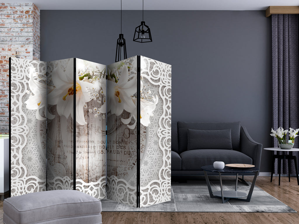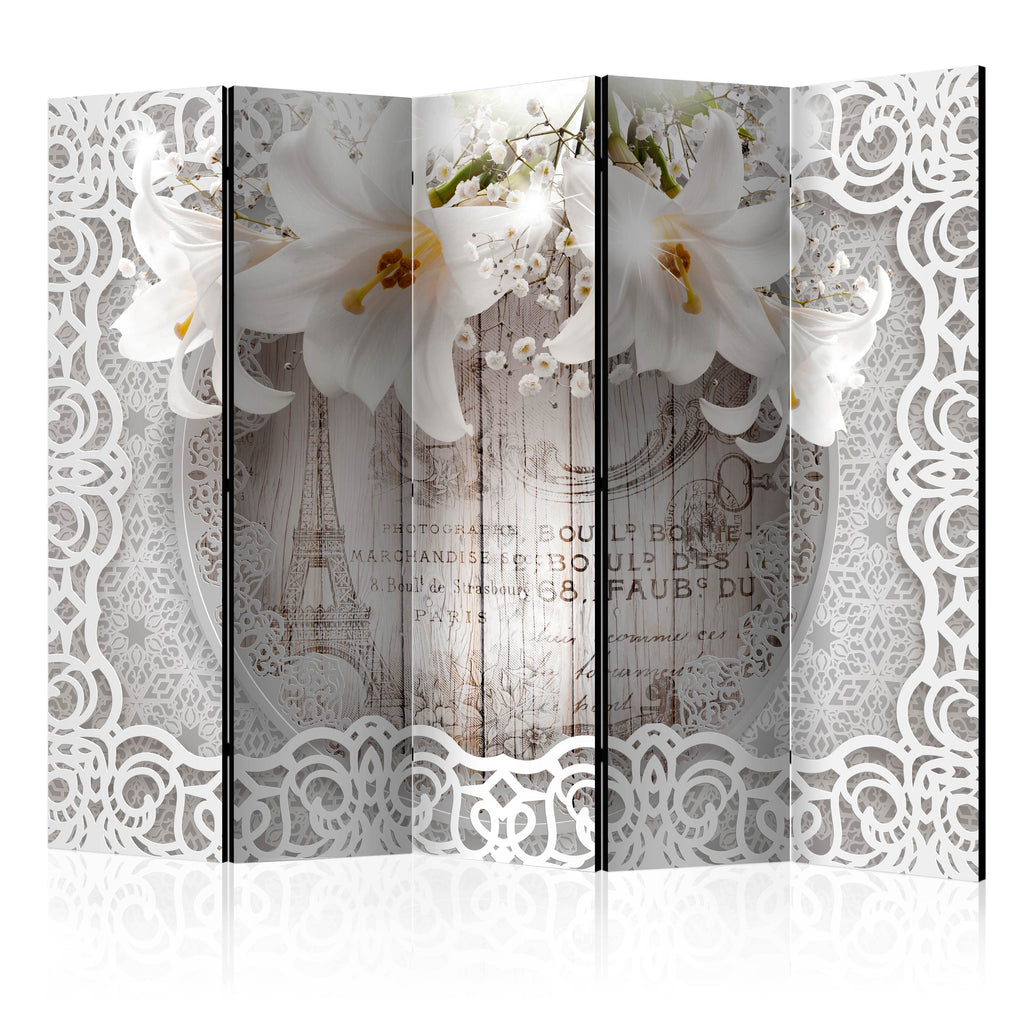 Het decoratieve vouwscherm "Vouwscherm - Lilies and Quilted Background II [Room Dividers]" past uitzonderlijk mooi in een modern interieur. Het houten tweezijdig bedrukte vouwscherm geeft niet alleen een mooie opdeling van een ruimte maar geeft ook een fantastische flair aan uw interieur. De perfectie uitvoering en het originele motief in full HD uitvoering zorgen ervoor dat de kamervouwschermen iedere ruimte een originele charme verschaffen. Een prachtig kamervouwscherm is een zeer originele versiering en kan bijvoorbeeld prima worden toegepast in woningen of dienstruimten. (kapsalon, dokterskliniek, administratiekantoor etc)