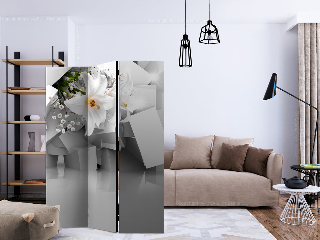 Het decoratieve vouwscherm "Vouwscherm - Lost in Chaos [Room Dividers]" past uitzonderlijk mooi in een modern interieur. Het houten driedelige en tweezijdig bedrukte vouwscherm geeft niet alleen een mooie opdeling van een ruimte maar geeft ook een fantastische flair aan uw interieur. De perfectie uitvoering en het originele motief in full HD uitvoering zorgen ervoor dat de kamervouwschermen iedere ruimte een originele charme verschaffen. Een prachtig kamervouwscherm is een zeer originele versiering en kan bijvoorbeeld prima worden toegepast in woningen of dienstruimten. (kapsalon, dokterskliniek, administratiekantoor etc)