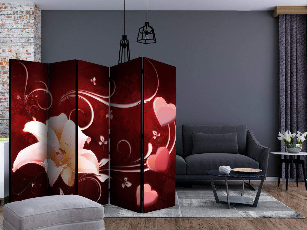 Het decoratieve vouwscherm "Vouwscherm - Love Message II [Room Dividers]" past uitzonderlijk mooi in een modern interieur. Het houten tweezijdig bedrukte vouwscherm geeft niet alleen een mooie opdeling van een ruimte maar geeft ook een fantastische flair aan uw interieur. De perfectie uitvoering en het originele motief in full HD uitvoering zorgen ervoor dat de kamervouwschermen iedere ruimte een originele charme verschaffen. Een prachtig kamervouwscherm is een zeer originele versiering en kan bijvoorbeeld prima worden toegepast in woningen of dienstruimten. (kapsalon, dokterskliniek, administratiekantoor etc)