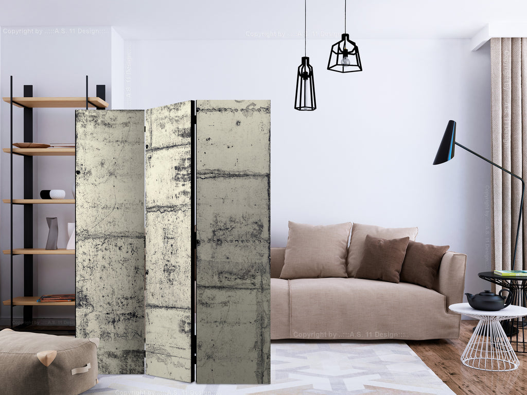 Het decoratieve vouwscherm "Vouwscherm - Love the Concrete [Room Dividers]" past uitzonderlijk mooi in een modern interieur. Het houten driedelige en tweezijdig bedrukte vouwscherm geeft niet alleen een mooie opdeling van een ruimte maar geeft ook een fantastische flair aan uw interieur. De perfectie uitvoering en het originele motief in full HD uitvoering zorgen ervoor dat de kamervouwschermen iedere ruimte een originele charme verschaffen. Een prachtig kamervouwscherm is een zeer originele versiering en kan bijvoorbeeld prima worden toegepast in woningen of dienstruimten. (kapsalon, dokterskliniek, administratiekantoor etc)
