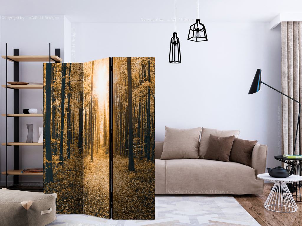 Het decoratieve vouwscherm "Vouwscherm - Magical Light [Room Dividers]" past uitzonderlijk mooi in een modern interieur. Het houten driedelige en tweezijdig bedrukte vouwscherm geeft niet alleen een mooie opdeling van een ruimte maar geeft ook een fantastische flair aan uw interieur. De perfectie uitvoering en het originele motief in full HD uitvoering zorgen ervoor dat de kamervouwschermen iedere ruimte een originele charme verschaffen. Een prachtig kamervouwscherm is een zeer originele versiering en kan bijvoorbeeld prima worden toegepast in woningen of dienstruimten. (kapsalon, dokterskliniek, administratiekantoor etc)