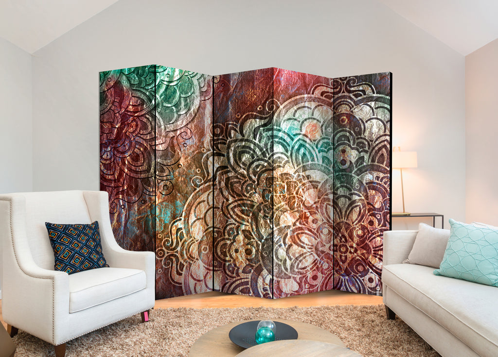 Het decoratieve vouwscherm "Vouwscherm - Mandala: Copper Garden II [Room Dividers]" past uitzonderlijk mooi in een modern interieur. Het houten tweezijdig bedrukte vouwscherm geeft niet alleen een mooie opdeling van een ruimte maar geeft ook een fantastische flair aan uw interieur. De perfectie uitvoering en het originele motief in full HD uitvoering zorgen ervoor dat de kamervouwschermen iedere ruimte een originele charme verschaffen. Een prachtig kamervouwscherm is een zeer originele versiering en kan bijvoorbeeld prima worden toegepast in woningen of dienstruimten. (kapsalon, dokterskliniek, administratiekantoor etc)