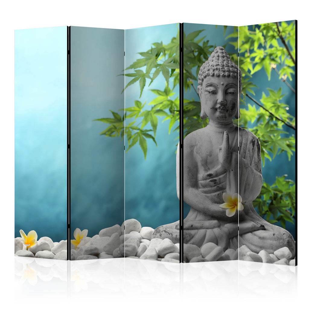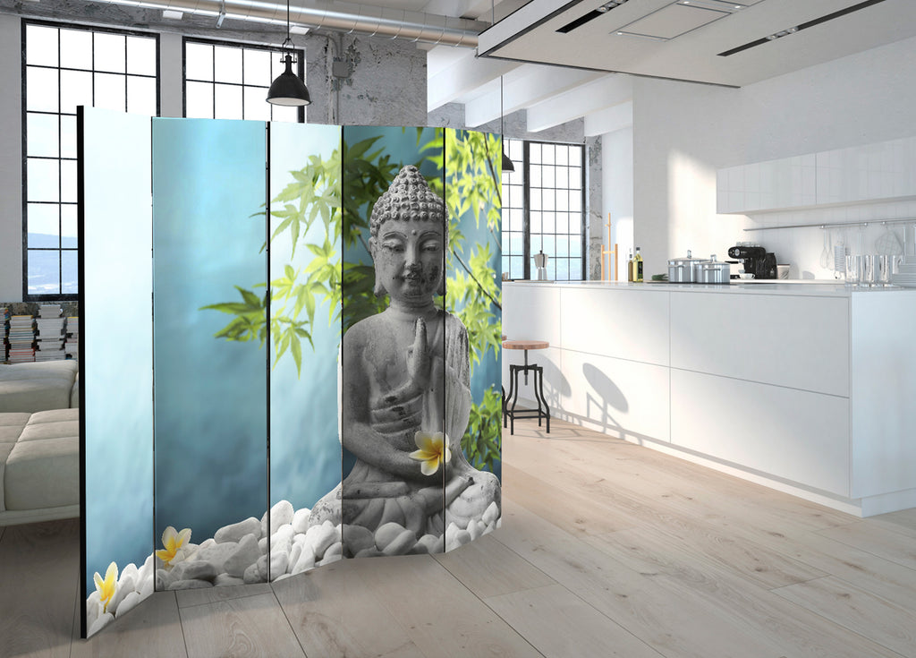 Het decoratieve vouwscherm "Vouwscherm - Meditating Buddha II [Room Dividers]" past uitzonderlijk mooi in een modern interieur. Het houten tweezijdig bedrukte vouwscherm geeft niet alleen een mooie opdeling van een ruimte maar geeft ook een fantastische flair aan uw interieur. De perfectie uitvoering en het originele motief in full HD uitvoering zorgen ervoor dat de kamervouwschermen iedere ruimte een originele charme verschaffen. Een prachtig kamervouwscherm is een zeer originele versiering en kan bijvoorbeeld prima worden toegepast in woningen of dienstruimten. (kapsalon, dokterskliniek, administratiekantoor etc)