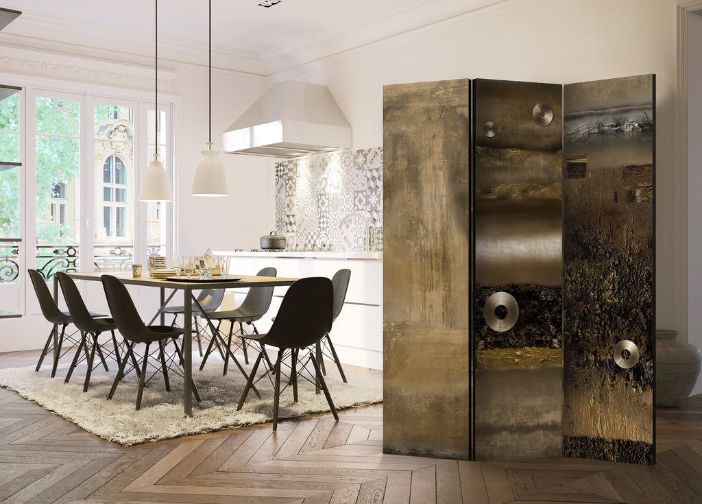 Het decoratieve vouwscherm "Vouwscherm - Metal Alliance [Room Dividers]" past uitzonderlijk mooi in een modern interieur. Het houten driedelige en tweezijdig bedrukte vouwscherm geeft niet alleen een mooie opdeling van een ruimte maar geeft ook een fantastische flair aan uw interieur. De perfectie uitvoering en het originele motief in full HD uitvoering zorgen ervoor dat de kamervouwschermen iedere ruimte een originele charme verschaffen. Een prachtig kamervouwscherm is een zeer originele versiering en kan bijvoorbeeld prima worden toegepast in woningen of dienstruimten. (kapsalon, dokterskliniek, administratiekantoor etc)