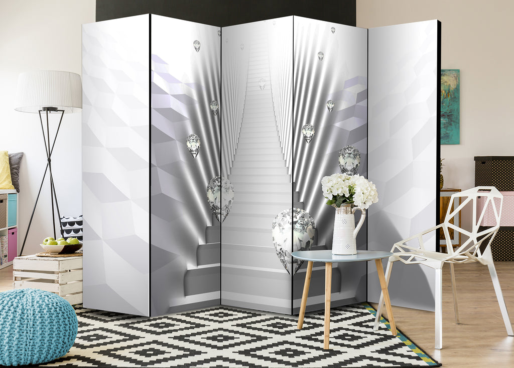 Het decoratieve vouwscherm "Vouwscherm - Mneme II [Room Dividers]" past uitzonderlijk mooi in een modern interieur. Het houten tweezijdig bedrukte vouwscherm geeft niet alleen een mooie opdeling van een ruimte maar geeft ook een fantastische flair aan uw interieur. De perfectie uitvoering en het originele motief in full HD uitvoering zorgen ervoor dat de kamervouwschermen iedere ruimte een originele charme verschaffen. Een prachtig kamervouwscherm is een zeer originele versiering en kan bijvoorbeeld prima worden toegepast in woningen of dienstruimten. (kapsalon, dokterskliniek, administratiekantoor etc)
