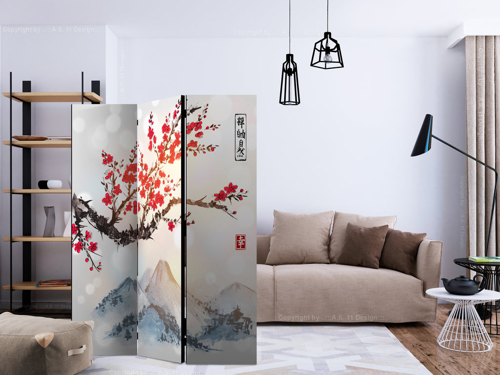 Het decoratieve vouwscherm "Vouwscherm - Mount Fuji [Room Dividers]" past uitzonderlijk mooi in een modern interieur. Het houten driedelige en tweezijdig bedrukte vouwscherm geeft niet alleen een mooie opdeling van een ruimte maar geeft ook een fantastische flair aan uw interieur. De perfectie uitvoering en het originele motief in full HD uitvoering zorgen ervoor dat de kamervouwschermen iedere ruimte een originele charme verschaffen. Een prachtig kamervouwscherm is een zeer originele versiering en kan bijvoorbeeld prima worden toegepast in woningen of dienstruimten. (kapsalon, dokterskliniek, administratiekantoor etc)