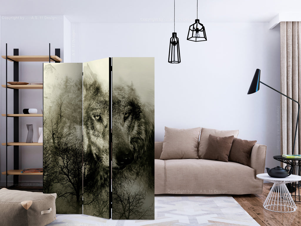 Het decoratieve vouwscherm "Vouwscherm - Mountain Predator (Beige) [Room Dividers]" past uitzonderlijk mooi in een modern interieur. Het houten driedelige en tweezijdig bedrukte vouwscherm geeft niet alleen een mooie opdeling van een ruimte maar geeft ook een fantastische flair aan uw interieur. De perfectie uitvoering en het originele motief in full HD uitvoering zorgen ervoor dat de kamervouwschermen iedere ruimte een originele charme verschaffen. Een prachtig kamervouwscherm is een zeer originele versiering en kan bijvoorbeeld prima worden toegepast in woningen of dienstruimten. (kapsalon, dokterskliniek, administratiekantoor etc)