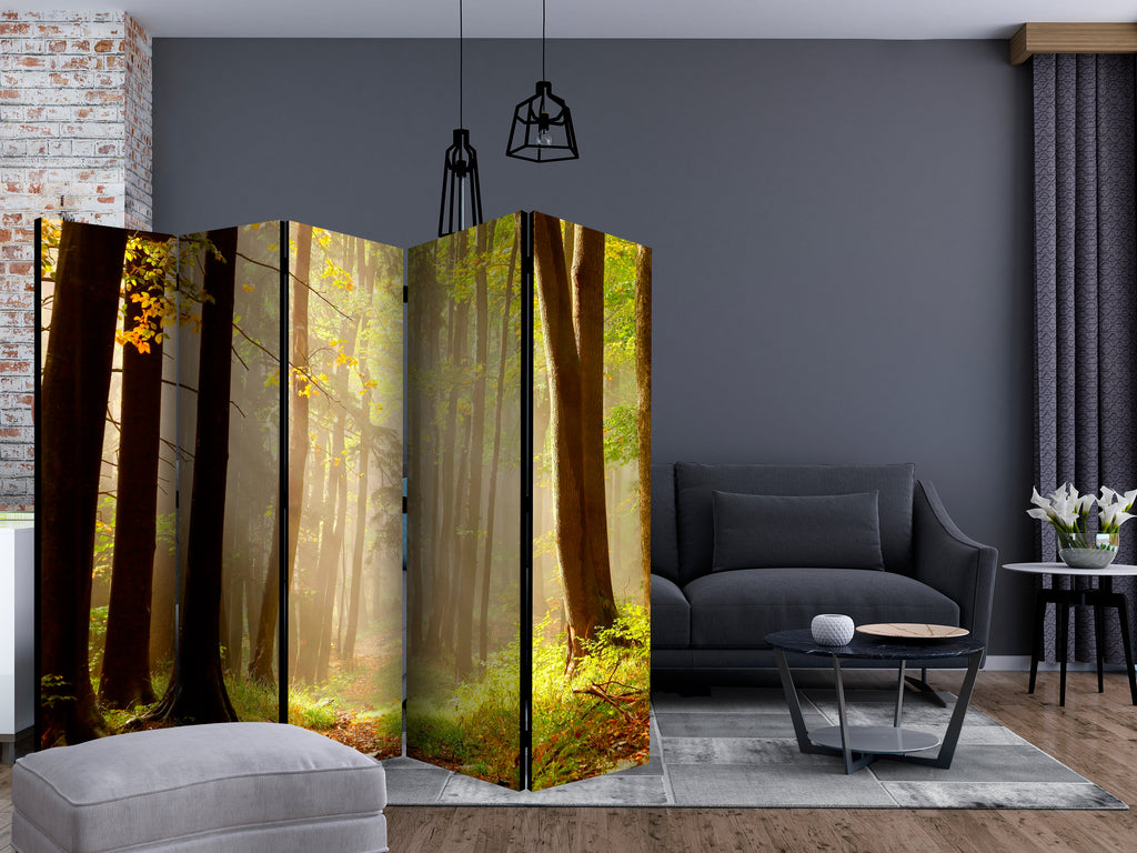 Het decoratieve vouwscherm "Vouwscherm - Mysterious forest path II [Room Dividers]" past uitzonderlijk mooi in een modern interieur. Het houten tweezijdig bedrukte vouwscherm geeft niet alleen een mooie opdeling van een ruimte maar geeft ook een fantastische flair aan uw interieur. De perfectie uitvoering en het originele motief in full HD uitvoering zorgen ervoor dat de kamervouwschermen iedere ruimte een originele charme verschaffen. Een prachtig kamervouwscherm is een zeer originele versiering en kan bijvoorbeeld prima worden toegepast in woningen of dienstruimten. (kapsalon, dokterskliniek, administratiekantoor etc)
