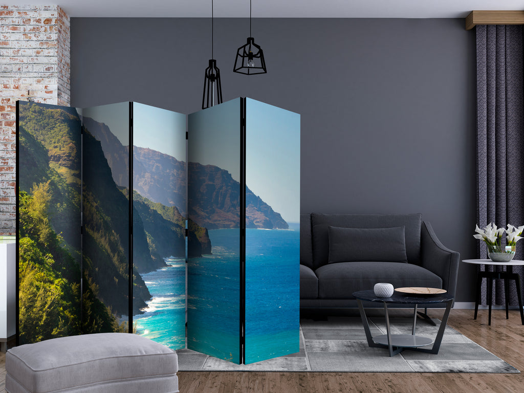 Het decoratieve vouwscherm "Vouwscherm - Na Pali Coast, Kauai, Hawaii II [Room Dividers]" past uitzonderlijk mooi in een modern interieur. Het houten tweezijdig bedrukte vouwscherm geeft niet alleen een mooie opdeling van een ruimte maar geeft ook een fantastische flair aan uw interieur. De perfectie uitvoering en het originele motief in full HD uitvoering zorgen ervoor dat de kamervouwschermen iedere ruimte een originele charme verschaffen. Een prachtig kamervouwscherm is een zeer originele versiering en kan bijvoorbeeld prima worden toegepast in woningen of dienstruimten. (kapsalon, dokterskliniek, administratiekantoor etc)
