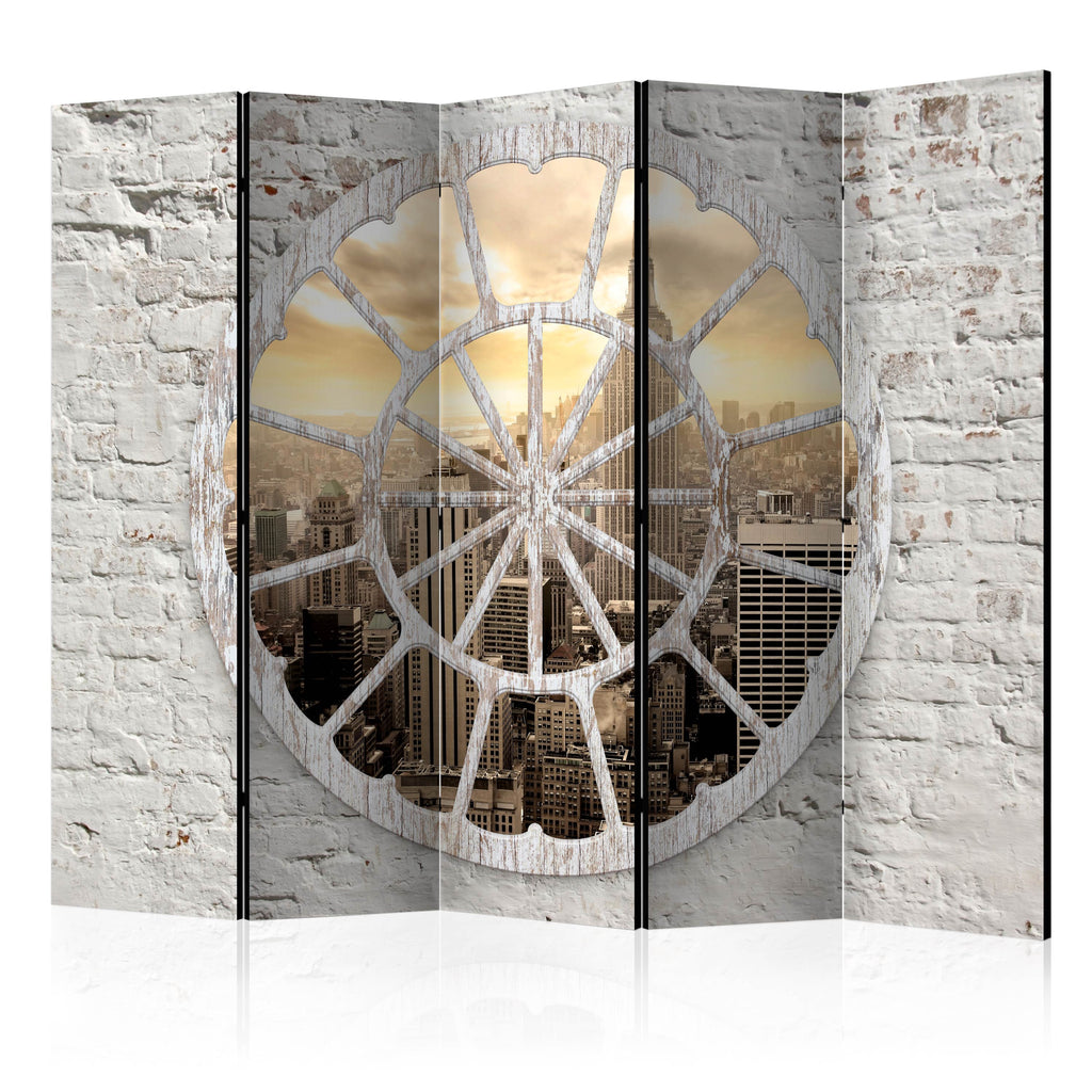 Het decoratieve vouwscherm "Vouwscherm - New York: A View through the Window II [Room Dividers]" past uitzonderlijk mooi in een modern interieur. Het houten tweezijdig bedrukte vouwscherm geeft niet alleen een mooie opdeling van een ruimte maar geeft ook een fantastische flair aan uw interieur. De perfectie uitvoering en het originele motief in full HD uitvoering zorgen ervoor dat de kamervouwschermen iedere ruimte een originele charme verschaffen. Een prachtig kamervouwscherm is een zeer originele versiering en kan bijvoorbeeld prima worden toegepast in woningen of dienstruimten. (kapsalon, dokterskliniek, administratiekantoor etc)