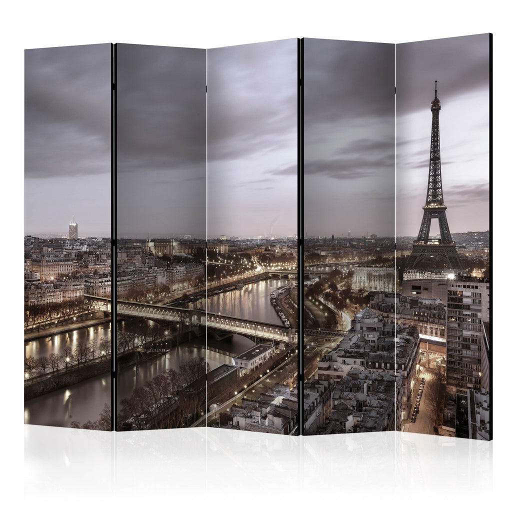 Het decoratieve vouwscherm "Vouwscherm - Night in Paris II [Room Dividers]" past uitzonderlijk mooi in een modern interieur. Het houten tweezijdig bedrukte vouwscherm geeft niet alleen een mooie opdeling van een ruimte maar geeft ook een fantastische flair aan uw interieur. De perfectie uitvoering en het originele motief in full HD uitvoering zorgen ervoor dat de kamervouwschermen iedere ruimte een originele charme verschaffen. Een prachtig kamervouwscherm is een zeer originele versiering en kan bijvoorbeeld prima worden toegepast in woningen of dienstruimten. (kapsalon, dokterskliniek, administratiekantoor etc)