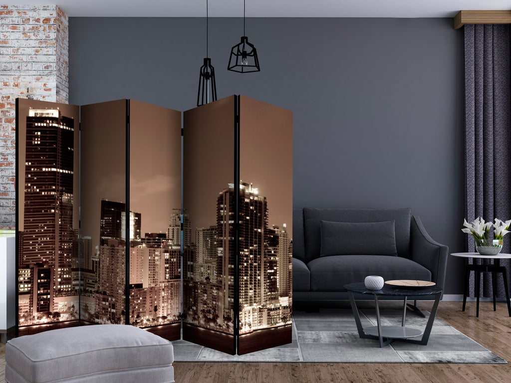 Het decoratieve vouwscherm "Vouwscherm - Night life in Miami II [Room Dividers]" past uitzonderlijk mooi in een modern interieur. Het houten tweezijdig bedrukte vouwscherm geeft niet alleen een mooie opdeling van een ruimte maar geeft ook een fantastische flair aan uw interieur. De perfectie uitvoering en het originele motief in full HD uitvoering zorgen ervoor dat de kamervouwschermen iedere ruimte een originele charme verschaffen. Een prachtig kamervouwscherm is een zeer originele versiering en kan bijvoorbeeld prima worden toegepast in woningen of dienstruimten. (kapsalon, dokterskliniek, administratiekantoor etc)