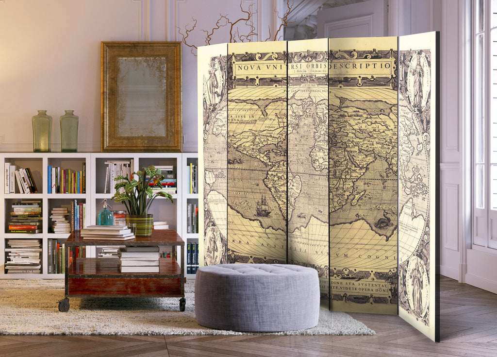 Het decoratieve vouwscherm "Vouwscherm - Nova Universi Orbis Descriptio [Room Dividers]" past uitzonderlijk mooi in een modern interieur. Het houten tweezijdig bedrukte vouwscherm geeft niet alleen een mooie opdeling van een ruimte maar geeft ook een fantastische flair aan uw interieur. De perfectie uitvoering en het originele motief in full HD uitvoering zorgen ervoor dat de kamervouwschermen iedere ruimte een originele charme verschaffen. Een prachtig kamervouwscherm is een zeer originele versiering en kan bijvoorbeeld prima worden toegepast in woningen of dienstruimten. (kapsalon, dokterskliniek, administratiekantoor etc)