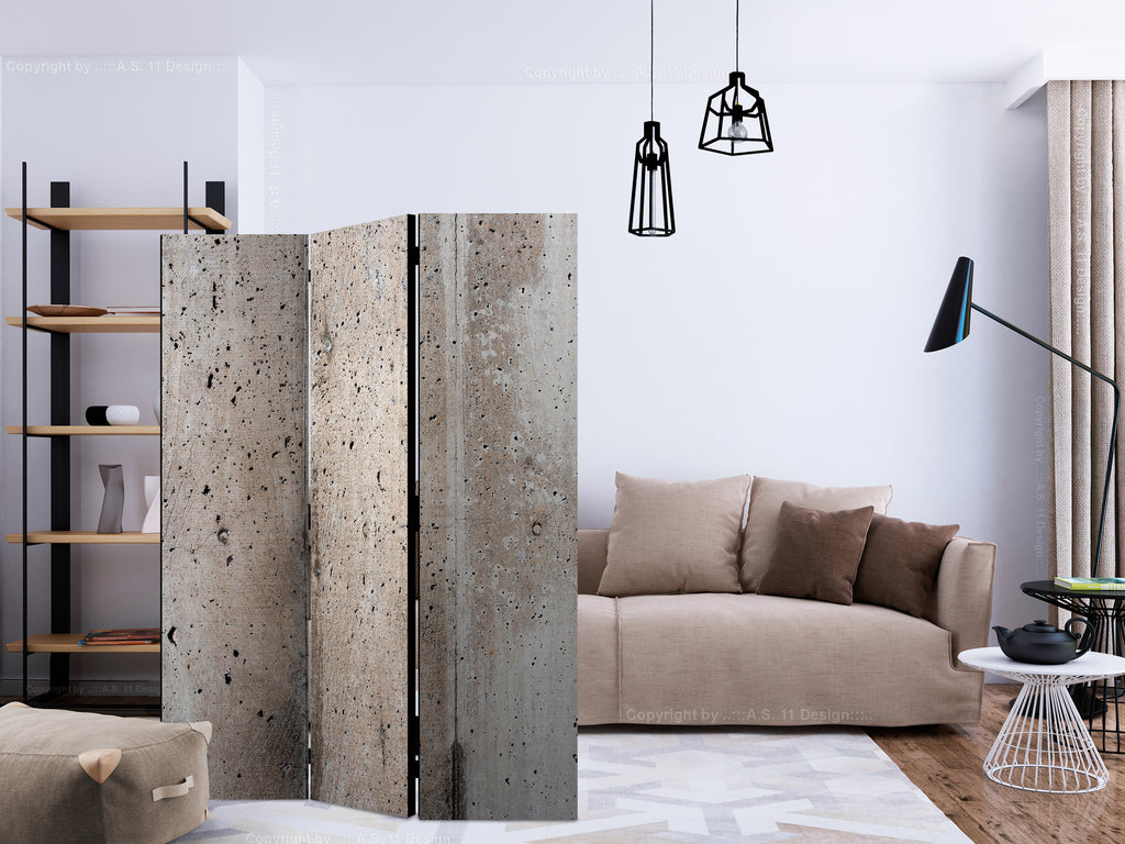 Het decoratieve vouwscherm "Vouwscherm - Old Concrete [Room Dividers]" past uitzonderlijk mooi in een modern interieur. Het houten driedelige en tweezijdig bedrukte vouwscherm geeft niet alleen een mooie opdeling van een ruimte maar geeft ook een fantastische flair aan uw interieur. De perfectie uitvoering en het originele motief in full HD uitvoering zorgen ervoor dat de kamervouwschermen iedere ruimte een originele charme verschaffen. Een prachtig kamervouwscherm is een zeer originele versiering en kan bijvoorbeeld prima worden toegepast in woningen of dienstruimten. (kapsalon, dokterskliniek, administratiekantoor etc)