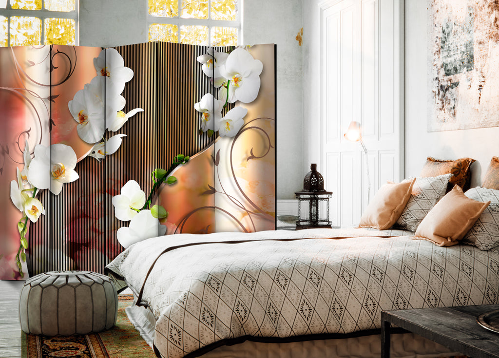 Het decoratieve vouwscherm "Vouwscherm - Orchid II [Room Dividers]" past uitzonderlijk mooi in een modern interieur. Het houten tweezijdig bedrukte vouwscherm geeft niet alleen een mooie opdeling van een ruimte maar geeft ook een fantastische flair aan uw interieur. De perfectie uitvoering en het originele motief in full HD uitvoering zorgen ervoor dat de kamervouwschermen iedere ruimte een originele charme verschaffen. Een prachtig kamervouwscherm is een zeer originele versiering en kan bijvoorbeeld prima worden toegepast in woningen of dienstruimten. (kapsalon, dokterskliniek, administratiekantoor etc)