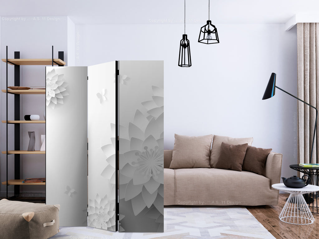 Het decoratieve vouwscherm "Vouwscherm - Oriental Flowers [Room Dividers]" past uitzonderlijk mooi in een modern interieur. Het houten driedelige en tweezijdig bedrukte vouwscherm geeft niet alleen een mooie opdeling van een ruimte maar geeft ook een fantastische flair aan uw interieur. De perfectie uitvoering en het originele motief in full HD uitvoering zorgen ervoor dat de kamervouwschermen iedere ruimte een originele charme verschaffen. Een prachtig kamervouwscherm is een zeer originele versiering en kan bijvoorbeeld prima worden toegepast in woningen of dienstruimten. (kapsalon, dokterskliniek, administratiekantoor etc)