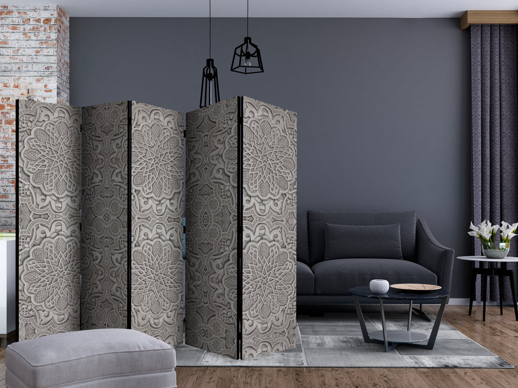 Het decoratieve vouwscherm "Vouwscherm - Oriental ornament II [Room Dividers]" past uitzonderlijk mooi in een modern interieur. Het houten tweezijdig bedrukte vouwscherm geeft niet alleen een mooie opdeling van een ruimte maar geeft ook een fantastische flair aan uw interieur. De perfectie uitvoering en het originele motief in full HD uitvoering zorgen ervoor dat de kamervouwschermen iedere ruimte een originele charme verschaffen. Een prachtig kamervouwscherm is een zeer originele versiering en kan bijvoorbeeld prima worden toegepast in woningen of dienstruimten. (kapsalon, dokterskliniek, administratiekantoor etc)