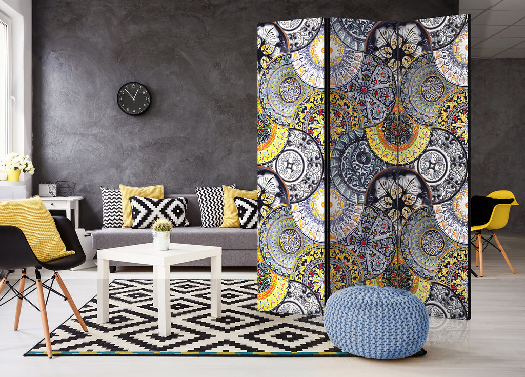 Het decoratieve vouwscherm "Vouwscherm - Painted Exoticism [Room Dividers]" past uitzonderlijk mooi in een modern interieur. Het houten driedelige en tweezijdig bedrukte vouwscherm geeft niet alleen een mooie opdeling van een ruimte maar geeft ook een fantastische flair aan uw interieur. De perfectie uitvoering en het originele motief in full HD uitvoering zorgen ervoor dat de kamervouwschermen iedere ruimte een originele charme verschaffen. Een prachtig kamervouwscherm is een zeer originele versiering en kan bijvoorbeeld prima worden toegepast in woningen of dienstruimten. (kapsalon, dokterskliniek, administratiekantoor etc)