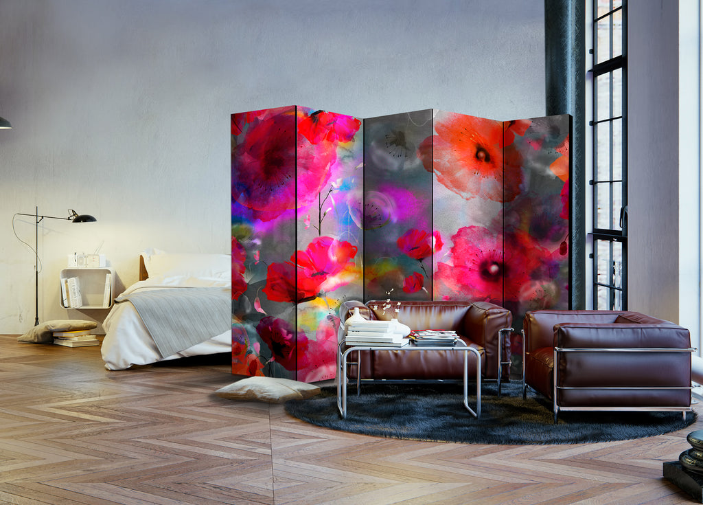 Het decoratieve vouwscherm "Vouwscherm - Painted Poppies II [Room Dividers]" past uitzonderlijk mooi in een modern interieur. Het houten tweezijdig bedrukte vouwscherm geeft niet alleen een mooie opdeling van een ruimte maar geeft ook een fantastische flair aan uw interieur. De perfectie uitvoering en het originele motief in full HD uitvoering zorgen ervoor dat de kamervouwschermen iedere ruimte een originele charme verschaffen. Een prachtig kamervouwscherm is een zeer originele versiering en kan bijvoorbeeld prima worden toegepast in woningen of dienstruimten. (kapsalon, dokterskliniek, administratiekantoor etc)