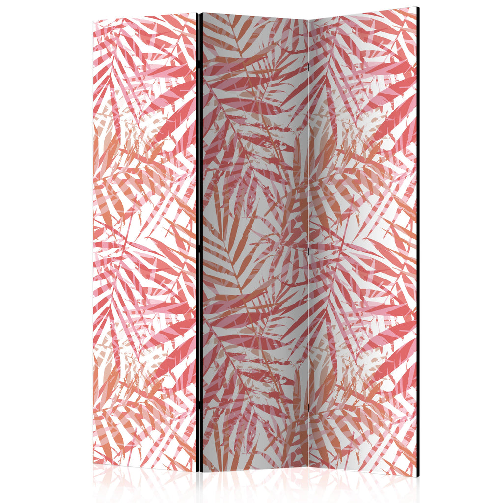 Het decoratieve vouwscherm "Vouwscherm - Palm Red [Room Dividers]" past uitzonderlijk mooi in een modern interieur. Het houten driedelige en tweezijdig bedrukte vouwscherm geeft niet alleen een mooie opdeling van een ruimte maar geeft ook een fantastische flair aan uw interieur. De perfectie uitvoering en het originele motief in full HD uitvoering zorgen ervoor dat de kamervouwschermen iedere ruimte een originele charme verschaffen. Een prachtig kamervouwscherm is een zeer originele versiering en kan bijvoorbeeld prima worden toegepast in woningen of dienstruimten. (kapsalon, dokterskliniek, administratiekantoor etc)