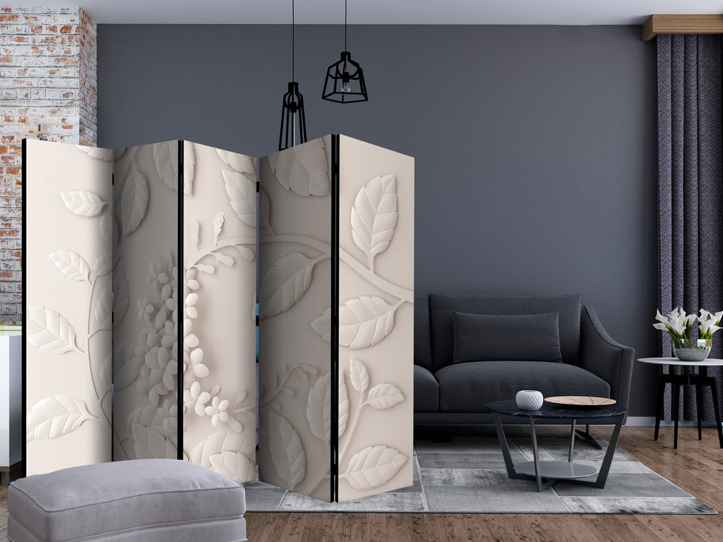 Het decoratieve vouwscherm "Vouwscherm - Paper Flowers (Cream) II [Room Dividers]" past uitzonderlijk mooi in een modern interieur. Het houten tweezijdig bedrukte vouwscherm geeft niet alleen een mooie opdeling van een ruimte maar geeft ook een fantastische flair aan uw interieur. De perfectie uitvoering en het originele motief in full HD uitvoering zorgen ervoor dat de kamervouwschermen iedere ruimte een originele charme verschaffen. Een prachtig kamervouwscherm is een zeer originele versiering en kan bijvoorbeeld prima worden toegepast in woningen of dienstruimten. (kapsalon, dokterskliniek, administratiekantoor etc)