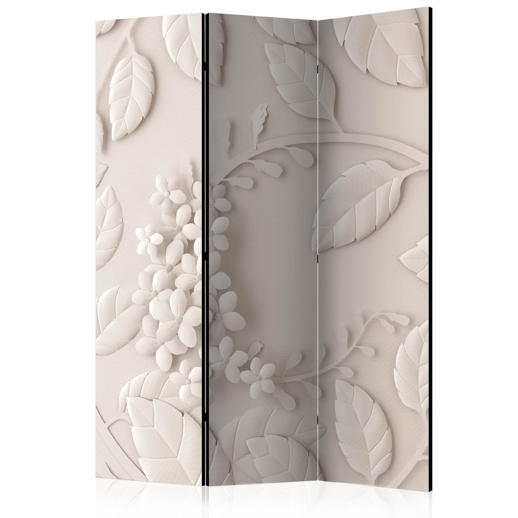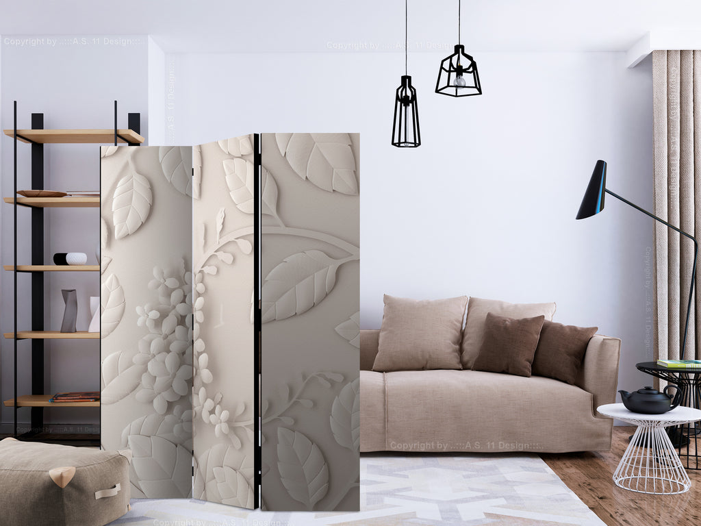 Het decoratieve vouwscherm "Vouwscherm - Paper Flowers (Cream) [Room Dividers]" past uitzonderlijk mooi in een modern interieur. Het houten driedelige en tweezijdig bedrukte vouwscherm geeft niet alleen een mooie opdeling van een ruimte maar geeft ook een fantastische flair aan uw interieur. De perfectie uitvoering en het originele motief in full HD uitvoering zorgen ervoor dat de kamervouwschermen iedere ruimte een originele charme verschaffen. Een prachtig kamervouwscherm is een zeer originele versiering en kan bijvoorbeeld prima worden toegepast in woningen of dienstruimten. (kapsalon, dokterskliniek, administratiekantoor etc)