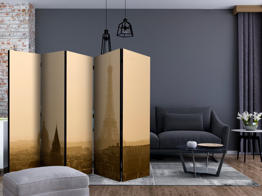 Het decoratieve vouwscherm "Vouwscherm - Paris at Dawn II [Room Dividers]" past uitzonderlijk mooi in een modern interieur. Het houten tweezijdig bedrukte vouwscherm geeft niet alleen een mooie opdeling van een ruimte maar geeft ook een fantastische flair aan uw interieur. De perfectie uitvoering en het originele motief in full HD uitvoering zorgen ervoor dat de kamervouwschermen iedere ruimte een originele charme verschaffen. Een prachtig kamervouwscherm is een zeer originele versiering en kan bijvoorbeeld prima worden toegepast in woningen of dienstruimten. (kapsalon, dokterskliniek, administratiekantoor etc)