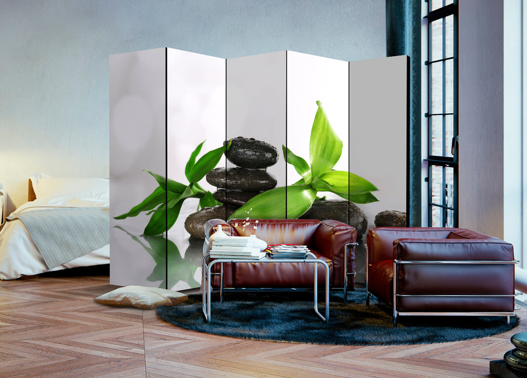 Het decoratieve vouwscherm "Vouwscherm - Peaceful Harmony II [Room Dividers]" past uitzonderlijk mooi in een modern interieur. Het houten tweezijdig bedrukte vouwscherm geeft niet alleen een mooie opdeling van een ruimte maar geeft ook een fantastische flair aan uw interieur. De perfectie uitvoering en het originele motief in full HD uitvoering zorgen ervoor dat de kamervouwschermen iedere ruimte een originele charme verschaffen. Een prachtig kamervouwscherm is een zeer originele versiering en kan bijvoorbeeld prima worden toegepast in woningen of dienstruimten. (kapsalon, dokterskliniek, administratiekantoor etc)