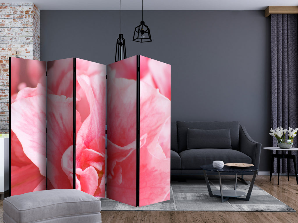 Het decoratieve vouwscherm "Vouwscherm - Pink azalea flowers II [Room Dividers]" past uitzonderlijk mooi in een modern interieur. Het houten tweezijdig bedrukte vouwscherm geeft niet alleen een mooie opdeling van een ruimte maar geeft ook een fantastische flair aan uw interieur. De perfectie uitvoering en het originele motief in full HD uitvoering zorgen ervoor dat de kamervouwschermen iedere ruimte een originele charme verschaffen. Een prachtig kamervouwscherm is een zeer originele versiering en kan bijvoorbeeld prima worden toegepast in woningen of dienstruimten. (kapsalon, dokterskliniek, administratiekantoor etc)