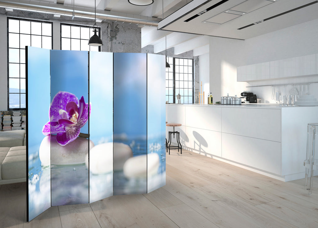 Het decoratieve vouwscherm "Vouwscherm - Pink Orchid and white Zen Stones II [Room Dividers]" past uitzonderlijk mooi in een modern interieur. Het houten tweezijdig bedrukte vouwscherm geeft niet alleen een mooie opdeling van een ruimte maar geeft ook een fantastische flair aan uw interieur. De perfectie uitvoering en het originele motief in full HD uitvoering zorgen ervoor dat de kamervouwschermen iedere ruimte een originele charme verschaffen. Een prachtig kamervouwscherm is een zeer originele versiering en kan bijvoorbeeld prima worden toegepast in woningen of dienstruimten. (kapsalon, dokterskliniek, administratiekantoor etc)