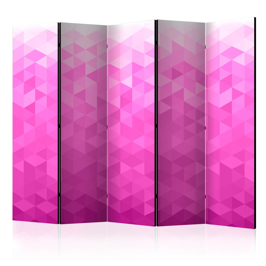Het decoratieve vouwscherm "Vouwscherm - PInk pixel II [Room Dividers]" past uitzonderlijk mooi in een modern interieur. Het houten tweezijdig bedrukte vouwscherm geeft niet alleen een mooie opdeling van een ruimte maar geeft ook een fantastische flair aan uw interieur. De perfectie uitvoering en het originele motief in full HD uitvoering zorgen ervoor dat de kamervouwschermen iedere ruimte een originele charme verschaffen. Een prachtig kamervouwscherm is een zeer originele versiering en kan bijvoorbeeld prima worden toegepast in woningen of dienstruimten. (kapsalon, dokterskliniek, administratiekantoor etc)