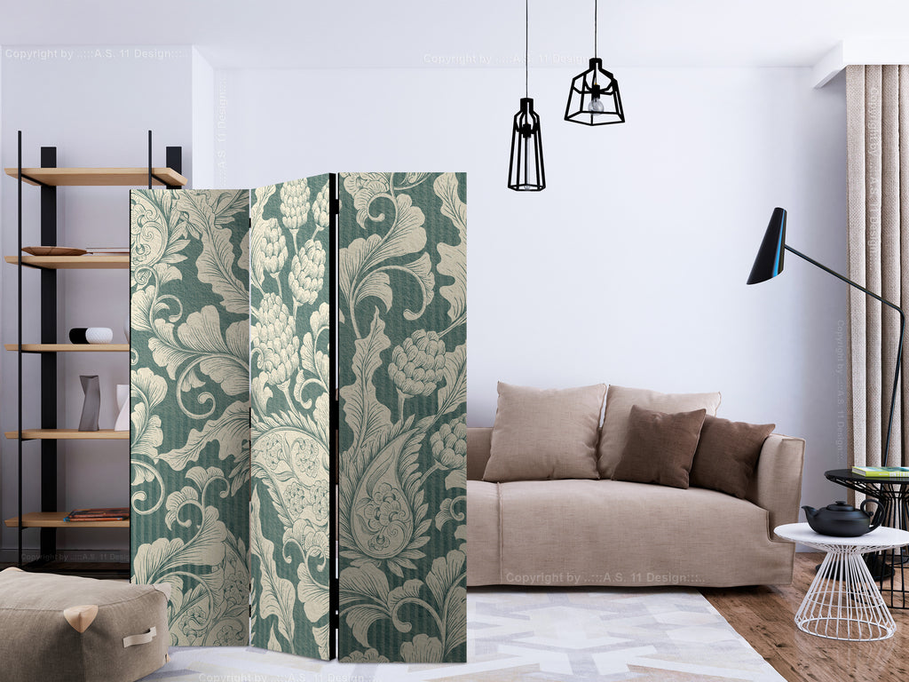 Het decoratieve vouwscherm "Vouwscherm - Plaster Ornaments [Room Dividers]" past uitzonderlijk mooi in een modern interieur. Het houten driedelige en tweezijdig bedrukte vouwscherm geeft niet alleen een mooie opdeling van een ruimte maar geeft ook een fantastische flair aan uw interieur. De perfectie uitvoering en het originele motief in full HD uitvoering zorgen ervoor dat de kamervouwschermen iedere ruimte een originele charme verschaffen. Een prachtig kamervouwscherm is een zeer originele versiering en kan bijvoorbeeld prima worden toegepast in woningen of dienstruimten. (kapsalon, dokterskliniek, administratiekantoor etc)