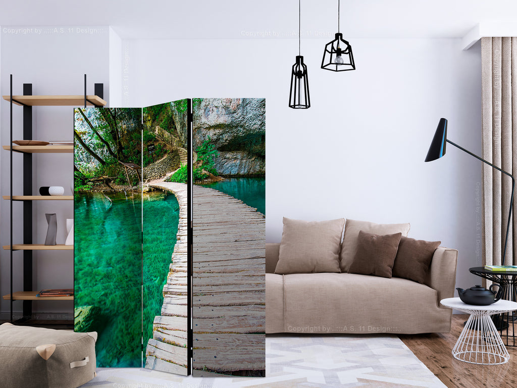 Het decoratieve vouwscherm "Vouwscherm - Plitvice Lakes National Park, Croatia [Room Dividers]" past uitzonderlijk mooi in een modern interieur. Het houten driedelige en tweezijdig bedrukte vouwscherm geeft niet alleen een mooie opdeling van een ruimte maar geeft ook een fantastische flair aan uw interieur. De perfectie uitvoering en het originele motief in full HD uitvoering zorgen ervoor dat de kamervouwschermen iedere ruimte een originele charme verschaffen. Een prachtig kamervouwscherm is een zeer originele versiering en kan bijvoorbeeld prima worden toegepast in woningen of dienstruimten. (kapsalon, dokterskliniek, administratiekantoor etc)