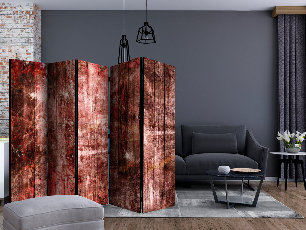 Het decoratieve vouwscherm "Vouwscherm - Purple Wood II [Room Dividers]" past uitzonderlijk mooi in een modern interieur. Het houten tweezijdig bedrukte vouwscherm geeft niet alleen een mooie opdeling van een ruimte maar geeft ook een fantastische flair aan uw interieur. De perfectie uitvoering en het originele motief in full HD uitvoering zorgen ervoor dat de kamervouwschermen iedere ruimte een originele charme verschaffen. Een prachtig kamervouwscherm is een zeer originele versiering en kan bijvoorbeeld prima worden toegepast in woningen of dienstruimten. (kapsalon, dokterskliniek, administratiekantoor etc)