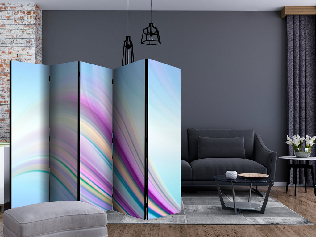 Het decoratieve vouwscherm "Vouwscherm - Rainbow abstract background II [Room Dividers]" past uitzonderlijk mooi in een modern interieur. Het houten tweezijdig bedrukte vouwscherm geeft niet alleen een mooie opdeling van een ruimte maar geeft ook een fantastische flair aan uw interieur. De perfectie uitvoering en het originele motief in full HD uitvoering zorgen ervoor dat de kamervouwschermen iedere ruimte een originele charme verschaffen. Een prachtig kamervouwscherm is een zeer originele versiering en kan bijvoorbeeld prima worden toegepast in woningen of dienstruimten. (kapsalon, dokterskliniek, administratiekantoor etc)