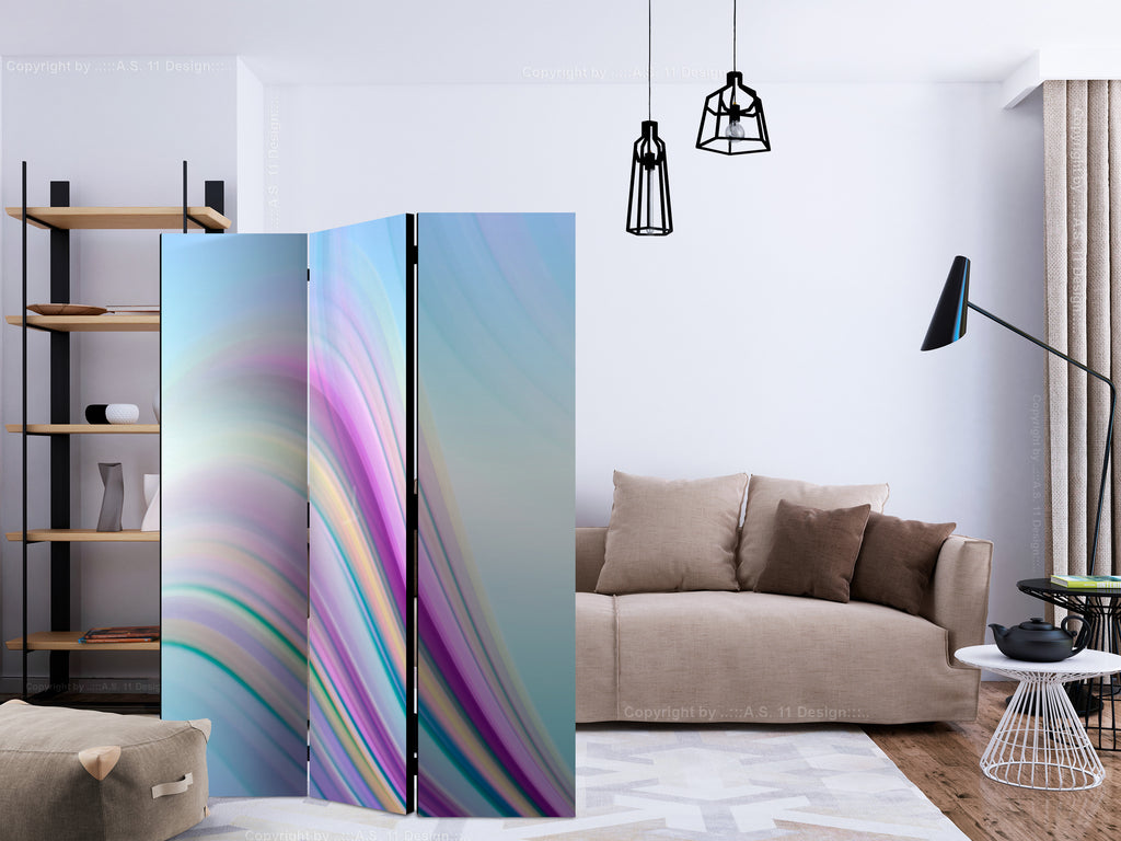 Het decoratieve vouwscherm "Vouwscherm - Rainbow abstract background [Room Dividers]" past uitzonderlijk mooi in een modern interieur. Het houten driedelige en tweezijdig bedrukte vouwscherm geeft niet alleen een mooie opdeling van een ruimte maar geeft ook een fantastische flair aan uw interieur. De perfectie uitvoering en het originele motief in full HD uitvoering zorgen ervoor dat de kamervouwschermen iedere ruimte een originele charme verschaffen. Een prachtig kamervouwscherm is een zeer originele versiering en kan bijvoorbeeld prima worden toegepast in woningen of dienstruimten. (kapsalon, dokterskliniek, administratiekantoor etc)