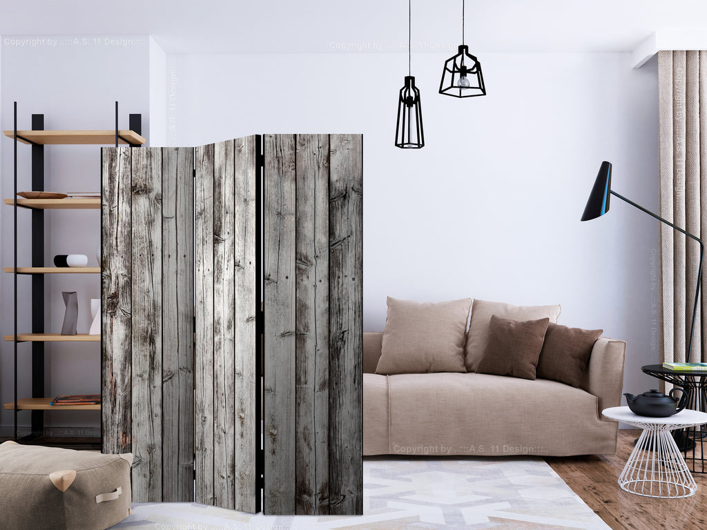 Het decoratieve vouwscherm "Vouwscherm - Raw Boards [Room Dividers]" past uitzonderlijk mooi in een modern interieur. Het houten driedelige en tweezijdig bedrukte vouwscherm geeft niet alleen een mooie opdeling van een ruimte maar geeft ook een fantastische flair aan uw interieur. De perfectie uitvoering en het originele motief in full HD uitvoering zorgen ervoor dat de kamervouwschermen iedere ruimte een originele charme verschaffen. Een prachtig kamervouwscherm is een zeer originele versiering en kan bijvoorbeeld prima worden toegepast in woningen of dienstruimten. (kapsalon, dokterskliniek, administratiekantoor etc)
