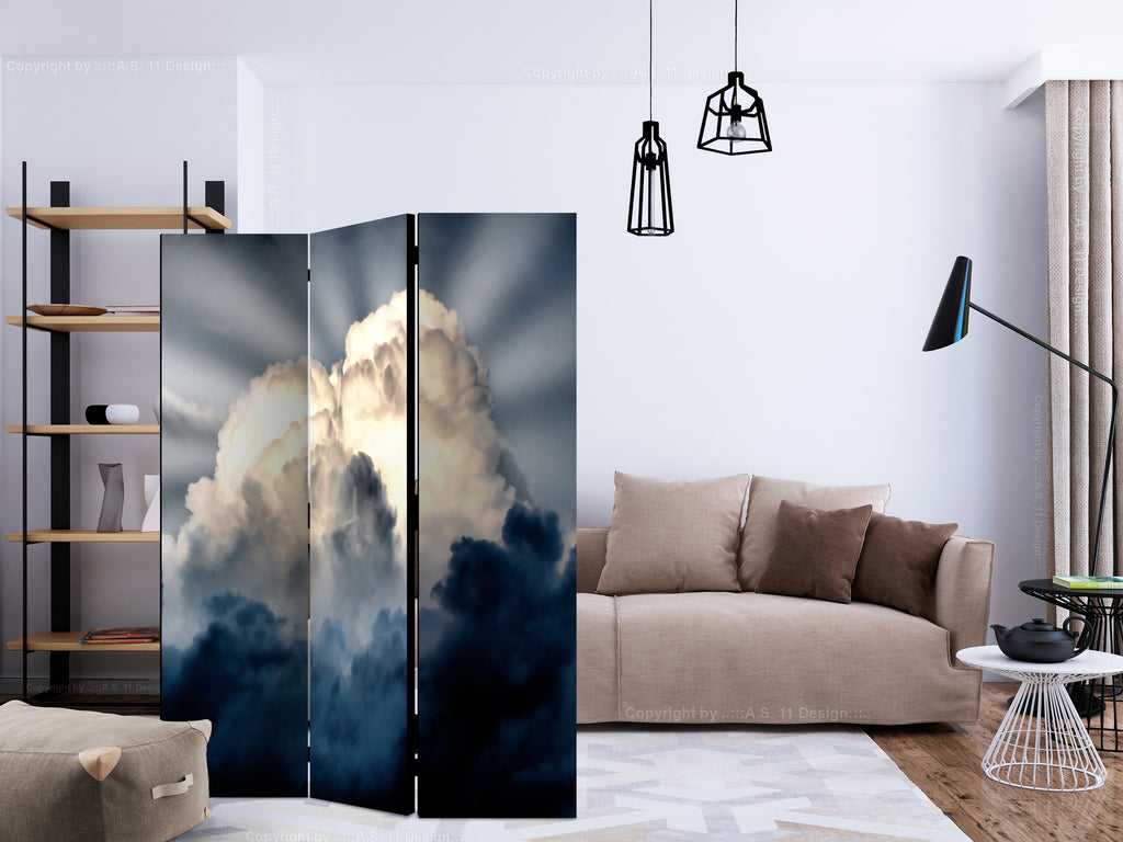 Het decoratieve vouwscherm "Vouwscherm - Rays in the sky [Room Dividers]" past uitzonderlijk mooi in een modern interieur. Het houten driedelige en tweezijdig bedrukte vouwscherm geeft niet alleen een mooie opdeling van een ruimte maar geeft ook een fantastische flair aan uw interieur. De perfectie uitvoering en het originele motief in full HD uitvoering zorgen ervoor dat de kamervouwschermen iedere ruimte een originele charme verschaffen. Een prachtig kamervouwscherm is een zeer originele versiering en kan bijvoorbeeld prima worden toegepast in woningen of dienstruimten. (kapsalon, dokterskliniek, administratiekantoor etc)