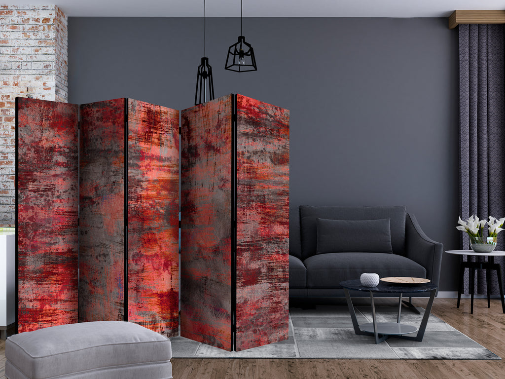 Het decoratieve vouwscherm "Vouwscherm - Red Metal II [Room Dividers]" past uitzonderlijk mooi in een modern interieur. Het houten tweezijdig bedrukte vouwscherm geeft niet alleen een mooie opdeling van een ruimte maar geeft ook een fantastische flair aan uw interieur. De perfectie uitvoering en het originele motief in full HD uitvoering zorgen ervoor dat de kamervouwschermen iedere ruimte een originele charme verschaffen. Een prachtig kamervouwscherm is een zeer originele versiering en kan bijvoorbeeld prima worden toegepast in woningen of dienstruimten. (kapsalon, dokterskliniek, administratiekantoor etc)