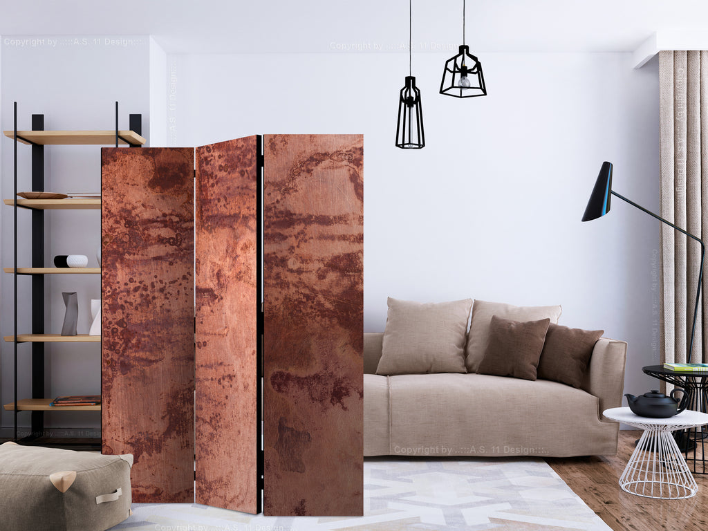 Het decoratieve vouwscherm "Vouwscherm - Red Metal Sheet [Room Dividers]" past uitzonderlijk mooi in een modern interieur. Het houten driedelige en tweezijdig bedrukte vouwscherm geeft niet alleen een mooie opdeling van een ruimte maar geeft ook een fantastische flair aan uw interieur. De perfectie uitvoering en het originele motief in full HD uitvoering zorgen ervoor dat de kamervouwschermen iedere ruimte een originele charme verschaffen. Een prachtig kamervouwscherm is een zeer originele versiering en kan bijvoorbeeld prima worden toegepast in woningen of dienstruimten. (kapsalon, dokterskliniek, administratiekantoor etc)