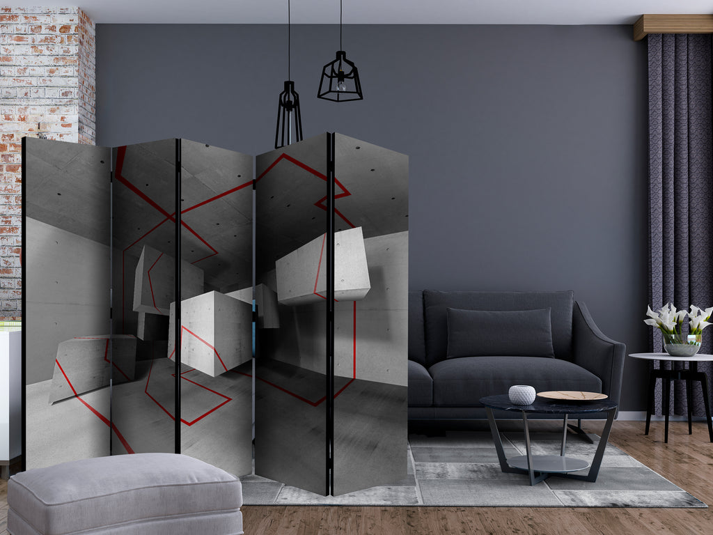 Het decoratieve vouwscherm "Vouwscherm - Red trail II [Room Dividers]" past uitzonderlijk mooi in een modern interieur. Het houten tweezijdig bedrukte vouwscherm geeft niet alleen een mooie opdeling van een ruimte maar geeft ook een fantastische flair aan uw interieur. De perfectie uitvoering en het originele motief in full HD uitvoering zorgen ervoor dat de kamervouwschermen iedere ruimte een originele charme verschaffen. Een prachtig kamervouwscherm is een zeer originele versiering en kan bijvoorbeeld prima worden toegepast in woningen of dienstruimten. (kapsalon, dokterskliniek, administratiekantoor etc)