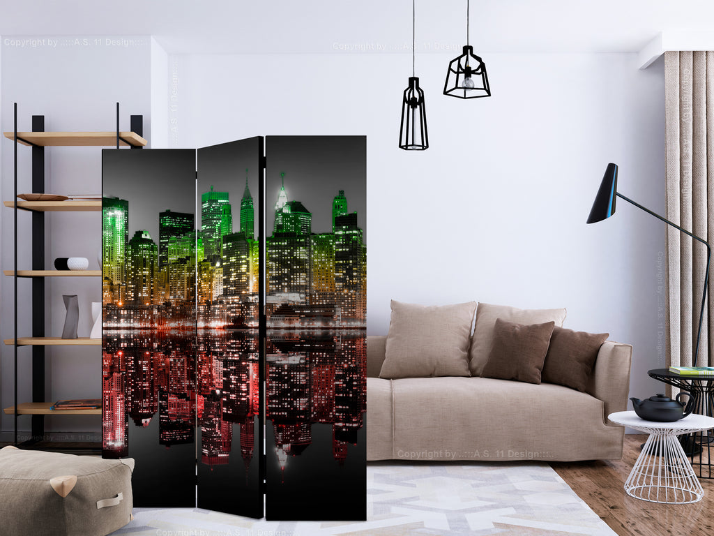 Het decoratieve vouwscherm "Vouwscherm - Reggae - New York [Room Dividers]" past uitzonderlijk mooi in een modern interieur. Het houten driedelige en tweezijdig bedrukte vouwscherm geeft niet alleen een mooie opdeling van een ruimte maar geeft ook een fantastische flair aan uw interieur. De perfectie uitvoering en het originele motief in full HD uitvoering zorgen ervoor dat de kamervouwschermen iedere ruimte een originele charme verschaffen. Een prachtig kamervouwscherm is een zeer originele versiering en kan bijvoorbeeld prima worden toegepast in woningen of dienstruimten. (kapsalon, dokterskliniek, administratiekantoor etc)