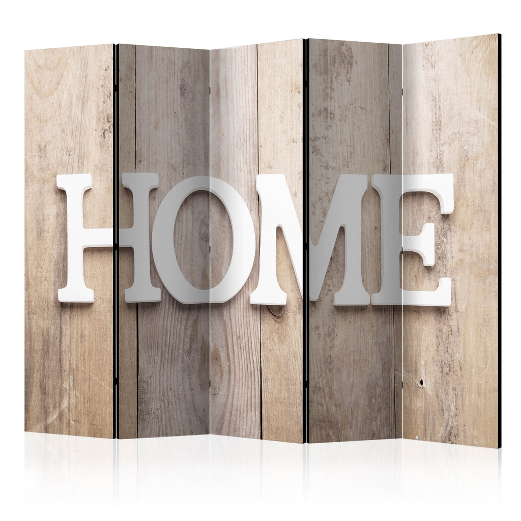 Het decoratieve vouwscherm "Vouwscherm - Room divider Home on wooden boards" past uitzonderlijk mooi in een modern interieur. Het houten tweezijdig bedrukte vouwscherm geeft niet alleen een mooie opdeling van een ruimte maar geeft ook een fantastische flair aan uw interieur. De perfectie uitvoering en het originele motief in full HD uitvoering zorgen ervoor dat de kamervouwschermen iedere ruimte een originele charme verschaffen. Een prachtig kamervouwscherm is een zeer originele versiering en kan bijvoorbeeld prima worden toegepast in woningen of dienstruimten. (kapsalon, dokterskliniek, administratiekantoor etc)