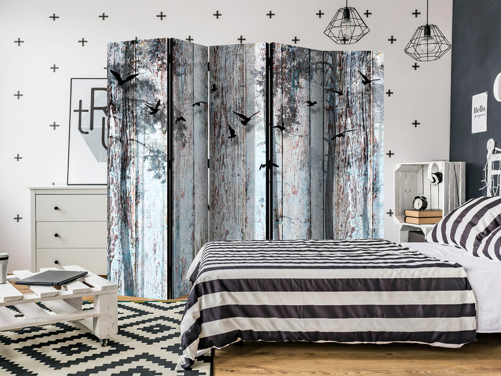 Het decoratieve vouwscherm "Vouwscherm - Rustic Boards II [Room Dividers]" past uitzonderlijk mooi in een modern interieur. Het houten tweezijdig bedrukte vouwscherm geeft niet alleen een mooie opdeling van een ruimte maar geeft ook een fantastische flair aan uw interieur. De perfectie uitvoering en het originele motief in full HD uitvoering zorgen ervoor dat de kamervouwschermen iedere ruimte een originele charme verschaffen. Een prachtig kamervouwscherm is een zeer originele versiering en kan bijvoorbeeld prima worden toegepast in woningen of dienstruimten. (kapsalon, dokterskliniek, administratiekantoor etc)
