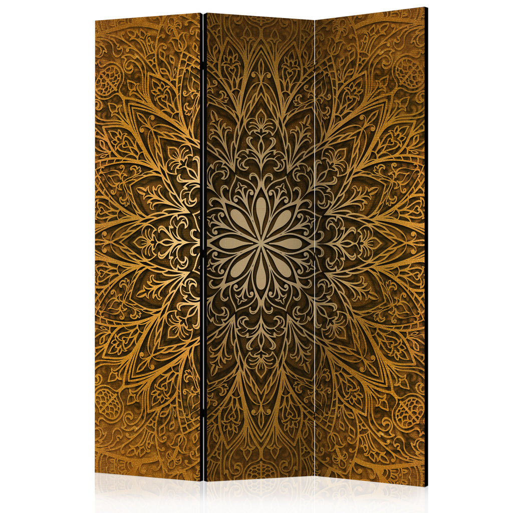 Het decoratieve vouwscherm "Vouwscherm - Sacred Circle [Room Dividers]" past uitzonderlijk mooi in een modern interieur. Het houten driedelige en tweezijdig bedrukte vouwscherm geeft niet alleen een mooie opdeling van een ruimte maar geeft ook een fantastische flair aan uw interieur. De perfectie uitvoering en het originele motief in full HD uitvoering zorgen ervoor dat de kamervouwschermen iedere ruimte een originele charme verschaffen. Een prachtig kamervouwscherm is een zeer originele versiering en kan bijvoorbeeld prima worden toegepast in woningen of dienstruimten. (kapsalon, dokterskliniek, administratiekantoor etc)