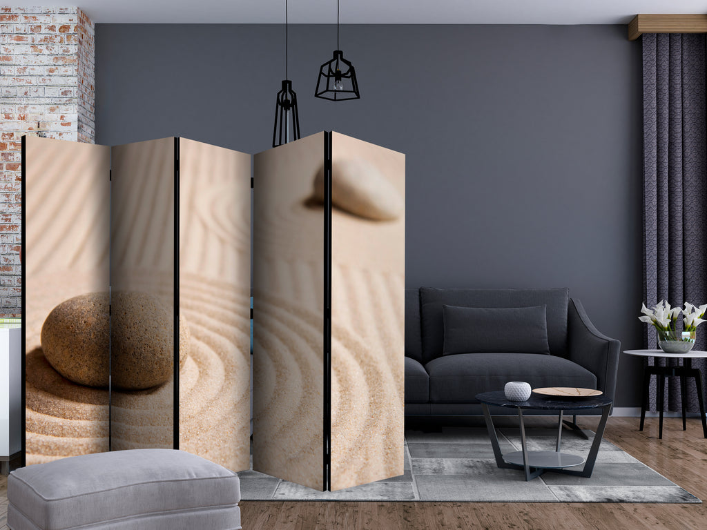 Het decoratieve vouwscherm "Vouwscherm - Sand and zen II [Room Dividers]" past uitzonderlijk mooi in een modern interieur. Het houten tweezijdig bedrukte vouwscherm geeft niet alleen een mooie opdeling van een ruimte maar geeft ook een fantastische flair aan uw interieur. De perfectie uitvoering en het originele motief in full HD uitvoering zorgen ervoor dat de kamervouwschermen iedere ruimte een originele charme verschaffen. Een prachtig kamervouwscherm is een zeer originele versiering en kan bijvoorbeeld prima worden toegepast in woningen of dienstruimten. (kapsalon, dokterskliniek, administratiekantoor etc)