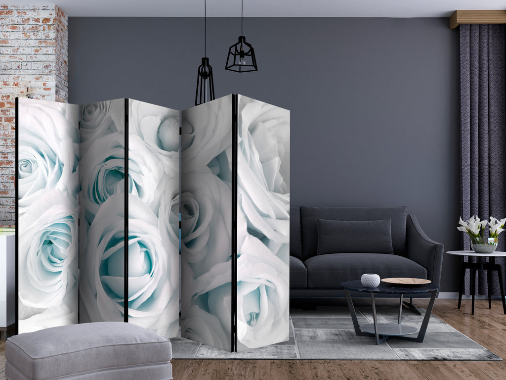 Het decoratieve vouwscherm "Vouwscherm - Satin Rose (Turquoise) II [Room Dividers]" past uitzonderlijk mooi in een modern interieur. Het houten tweezijdig bedrukte vouwscherm geeft niet alleen een mooie opdeling van een ruimte maar geeft ook een fantastische flair aan uw interieur. De perfectie uitvoering en het originele motief in full HD uitvoering zorgen ervoor dat de kamervouwschermen iedere ruimte een originele charme verschaffen. Een prachtig kamervouwscherm is een zeer originele versiering en kan bijvoorbeeld prima worden toegepast in woningen of dienstruimten. (kapsalon, dokterskliniek, administratiekantoor etc)